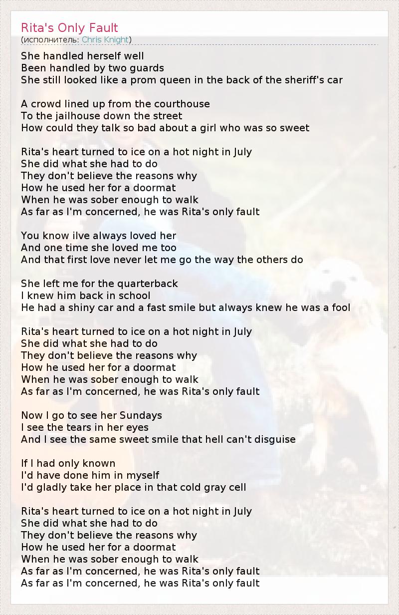 Rita's Only Fault