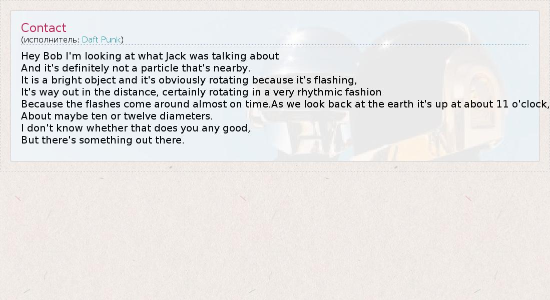 А как ты думаешь, о чем песня "Contact" ?