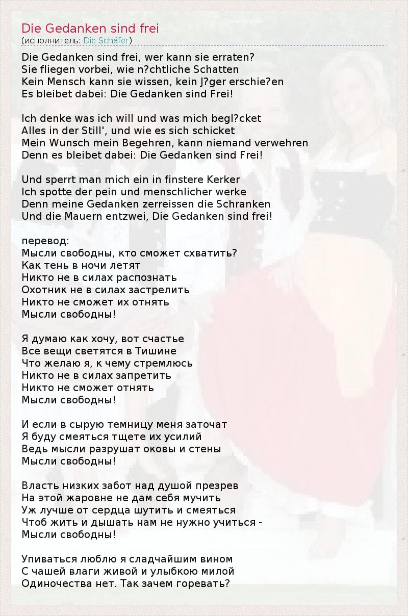 А как ты думаешь, о чем песня "Die Gedanken sind frei" ?
