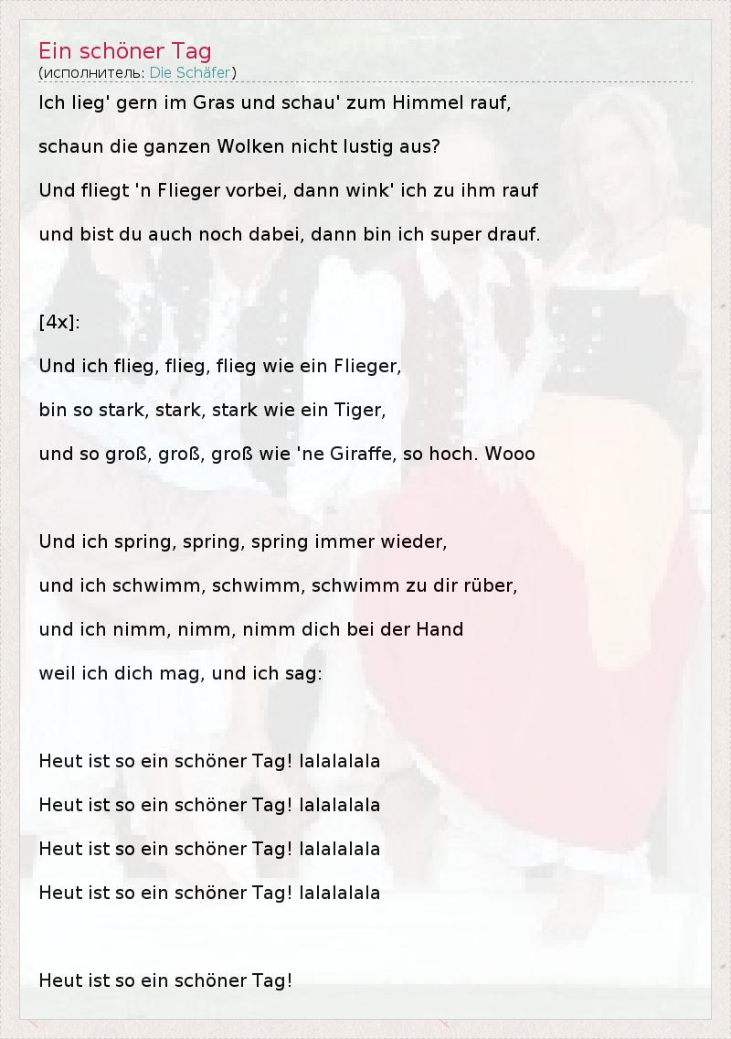А как ты думаешь, о чем песня "Ein schöner Tag" ?