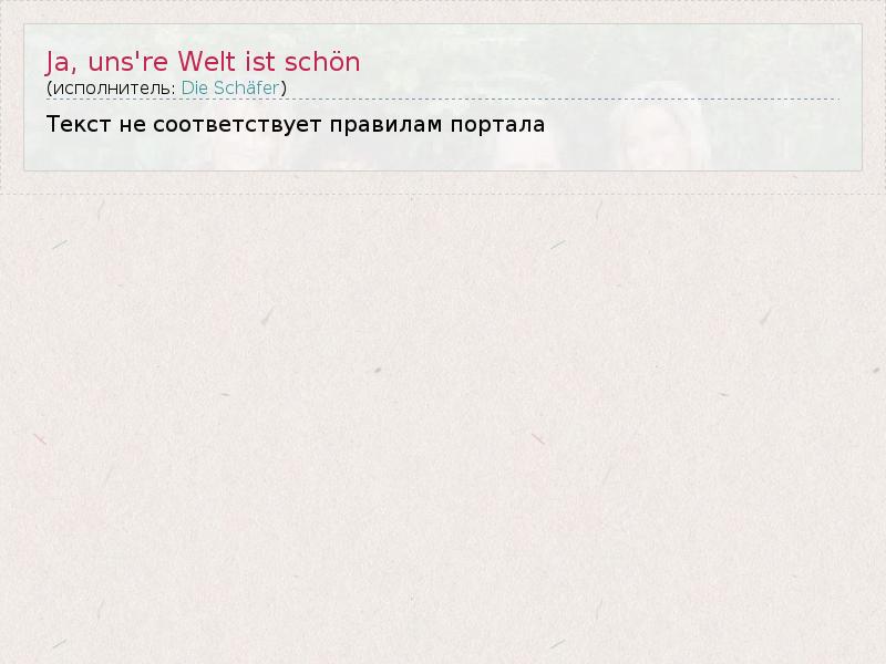А как ты думаешь, о чем песня "Ja, uns're Welt ist schön" ?