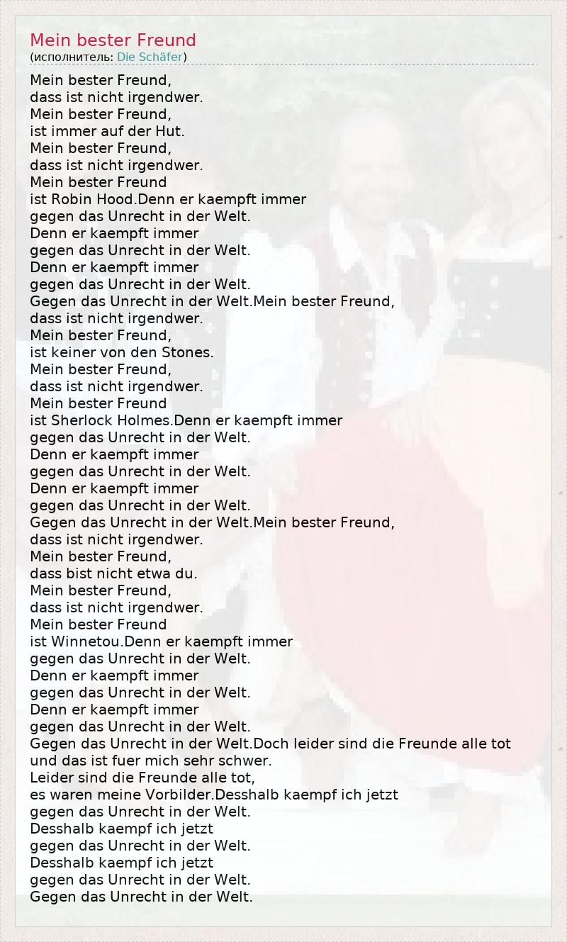 А как ты думаешь, о чем песня "Mein bester Freund" ?
