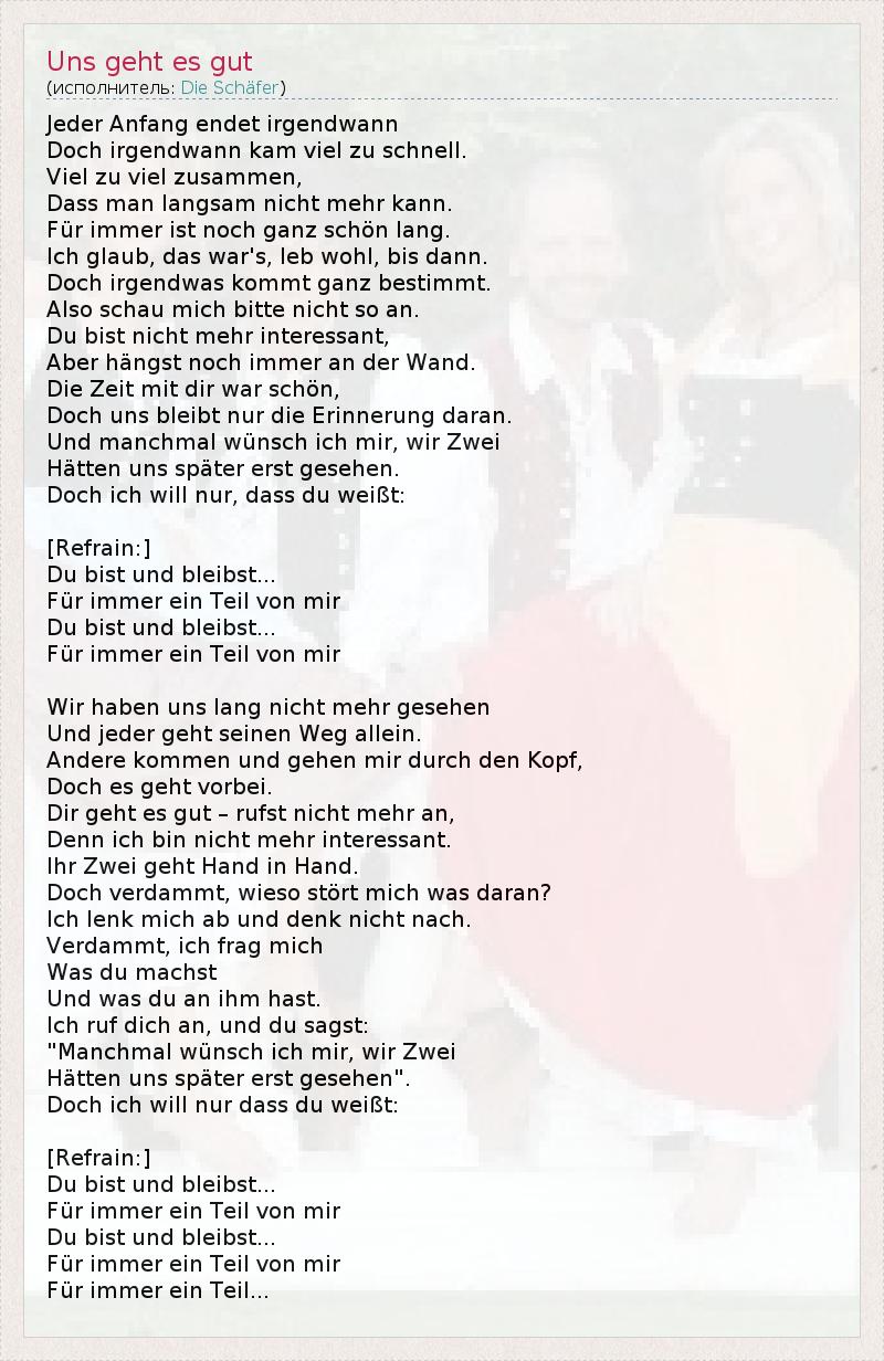 А как ты думаешь, о чем песня "Uns geht es gut" ?