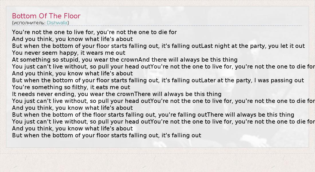 А как ты думаешь, о чем песня "Bottom Of The Floor" ?