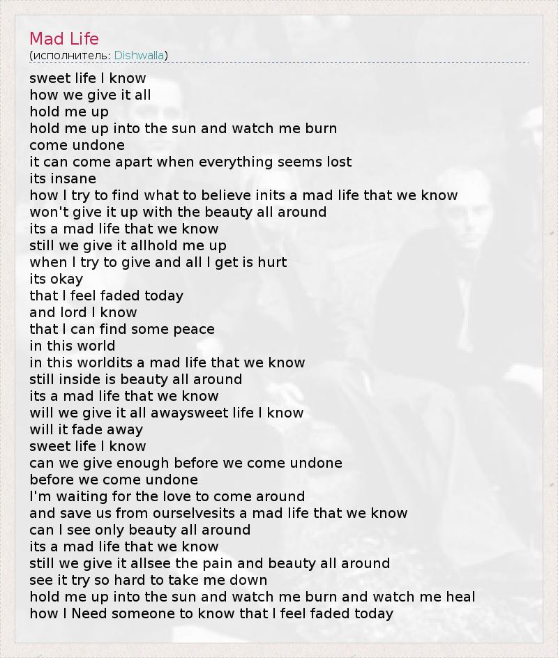 in this worldits a mad life that we know