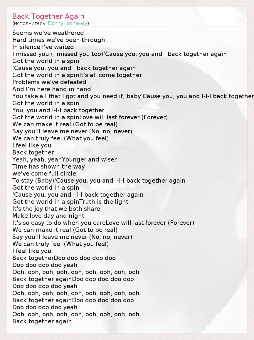 А как ты думаешь, о чем песня "Back Together Again" ?