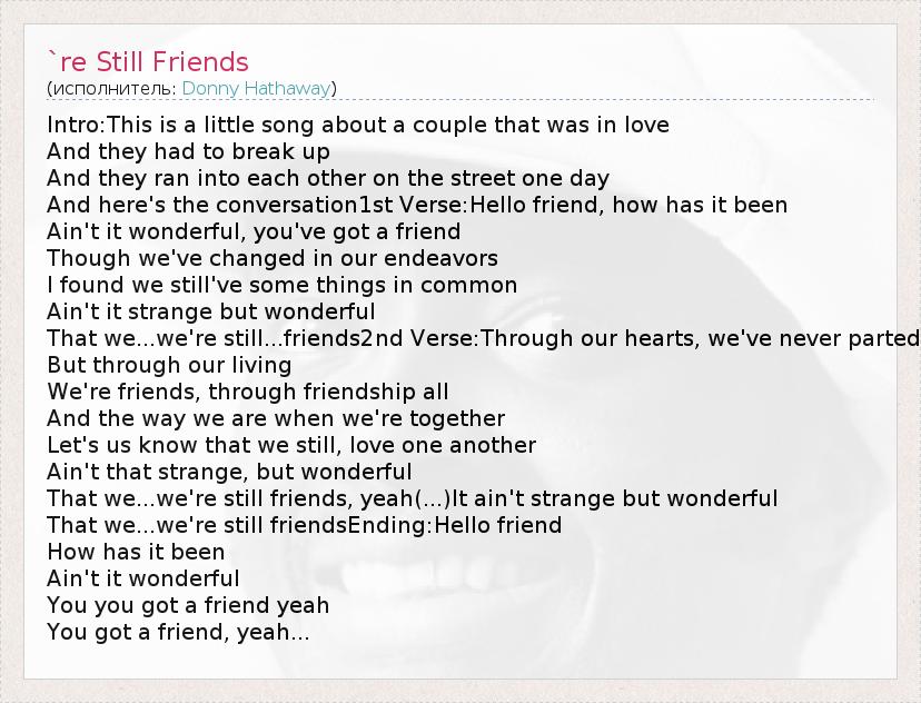 That we...we're still friends, yeah(...)It ain't strange but wonderful