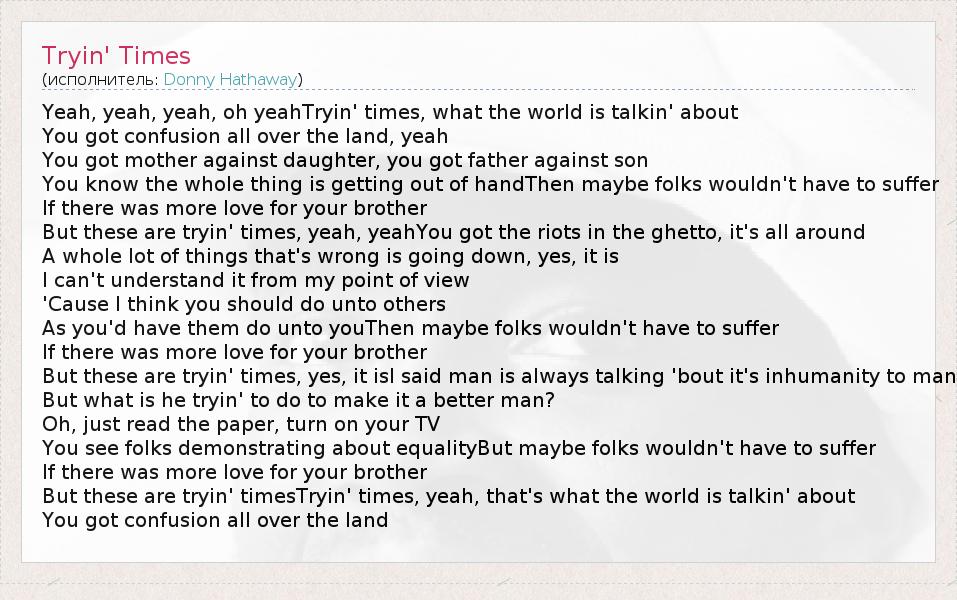 А как ты думаешь, о чем песня "Tryin' Times" ?