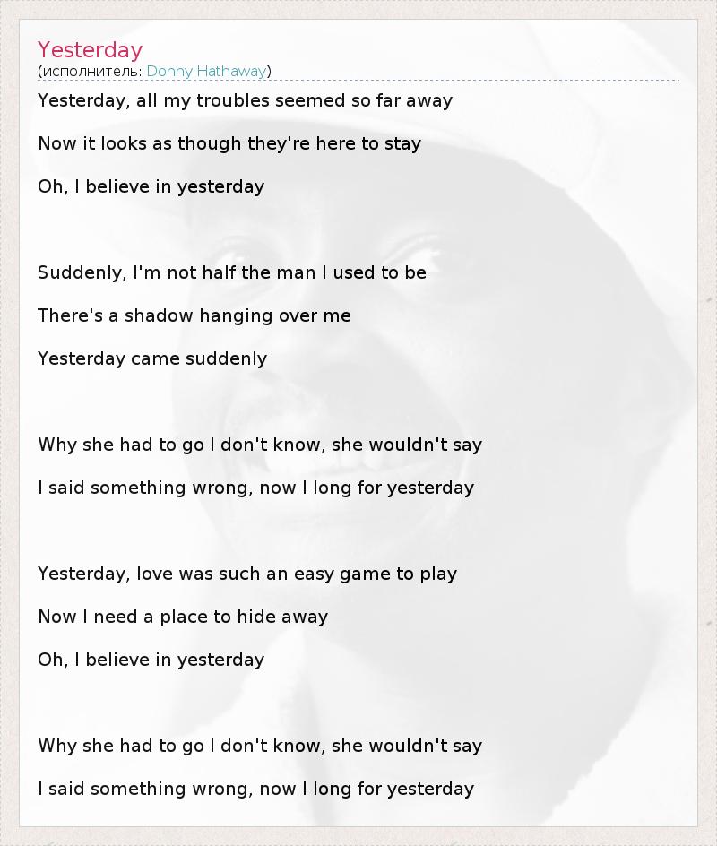 А как ты думаешь, о чем песня "Yesterday" ?