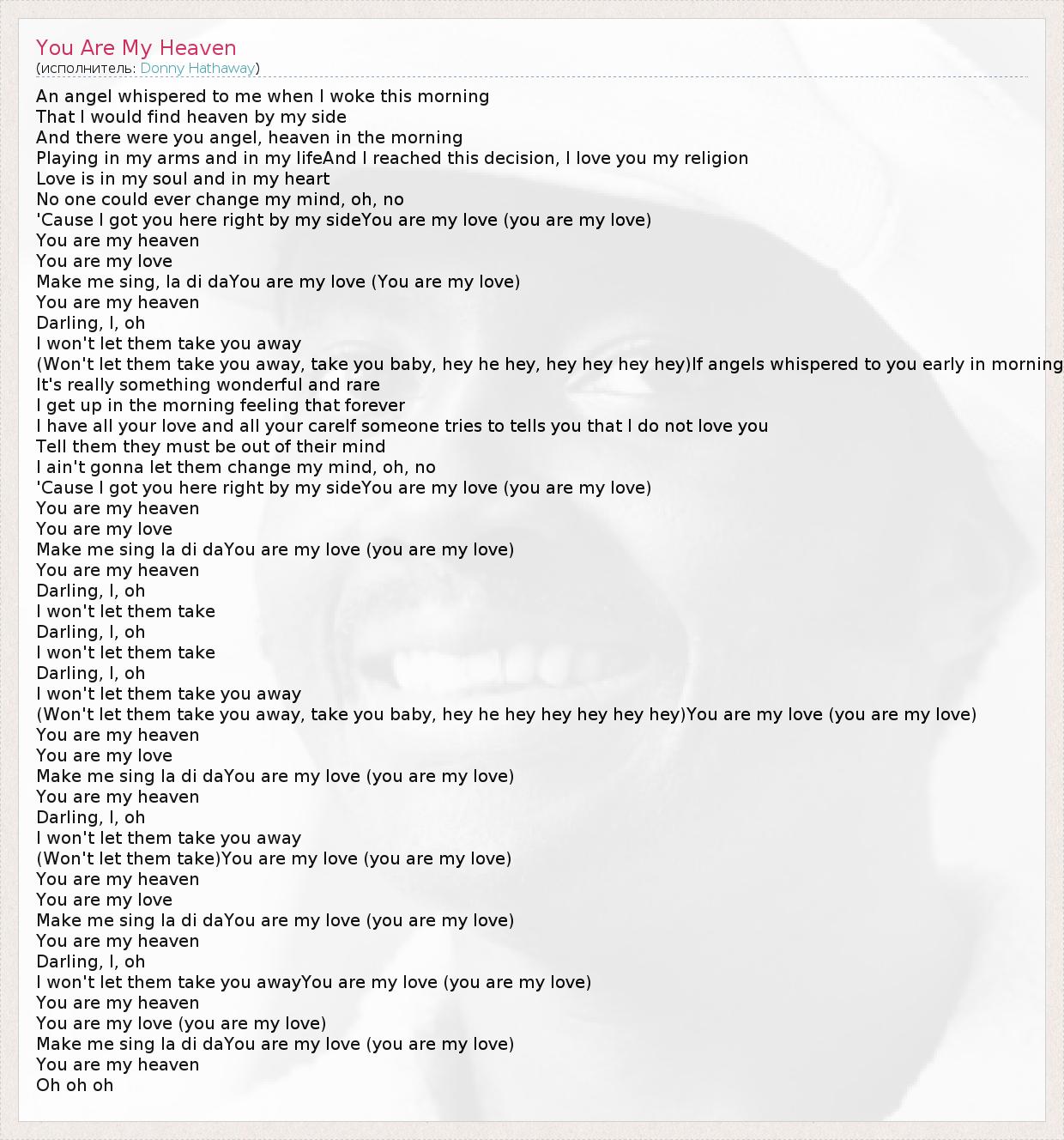 А как ты думаешь, о чем песня "You Are My Heaven" ?
