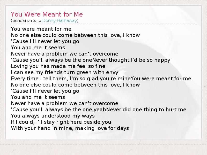 А как ты думаешь, о чем песня "You Were Meant for Me" ?