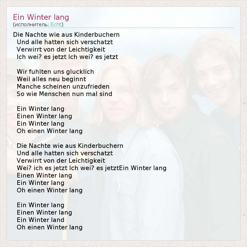 А как ты думаешь, о чем песня "Ein Winter lang" ?