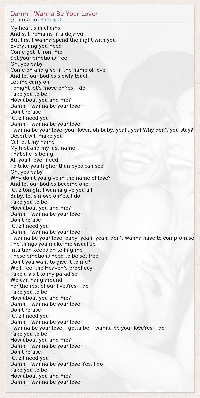 А как ты думаешь, о чем песня "Damn I Wanna Be Your Lover" ?