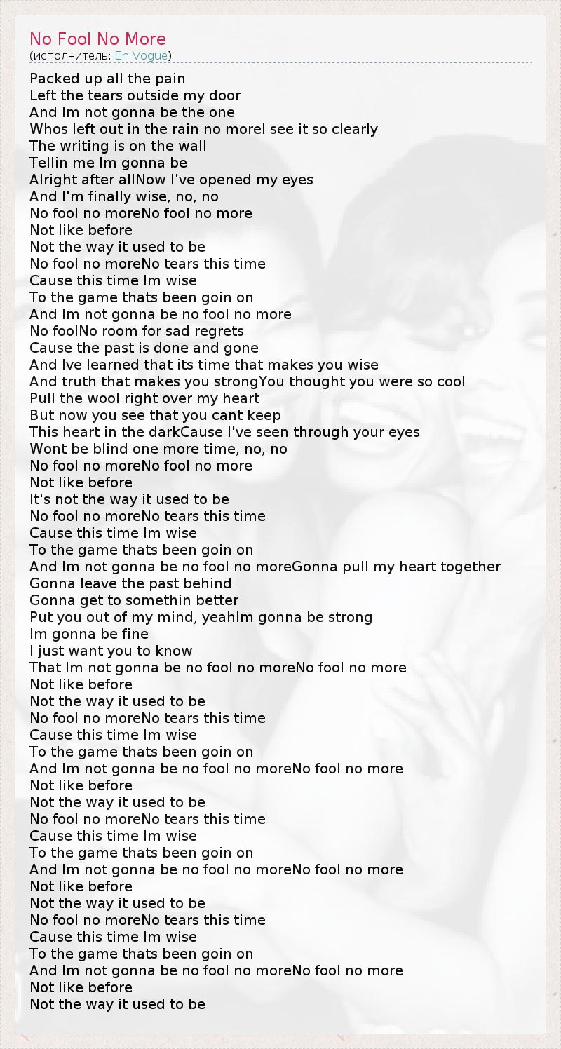 А как ты думаешь, о чем песня "No Fool No More" ?
