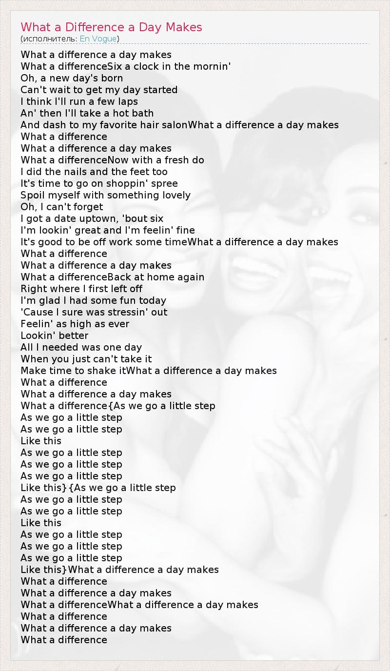 А как ты думаешь, о чем песня "What a Difference a Day Makes" ?