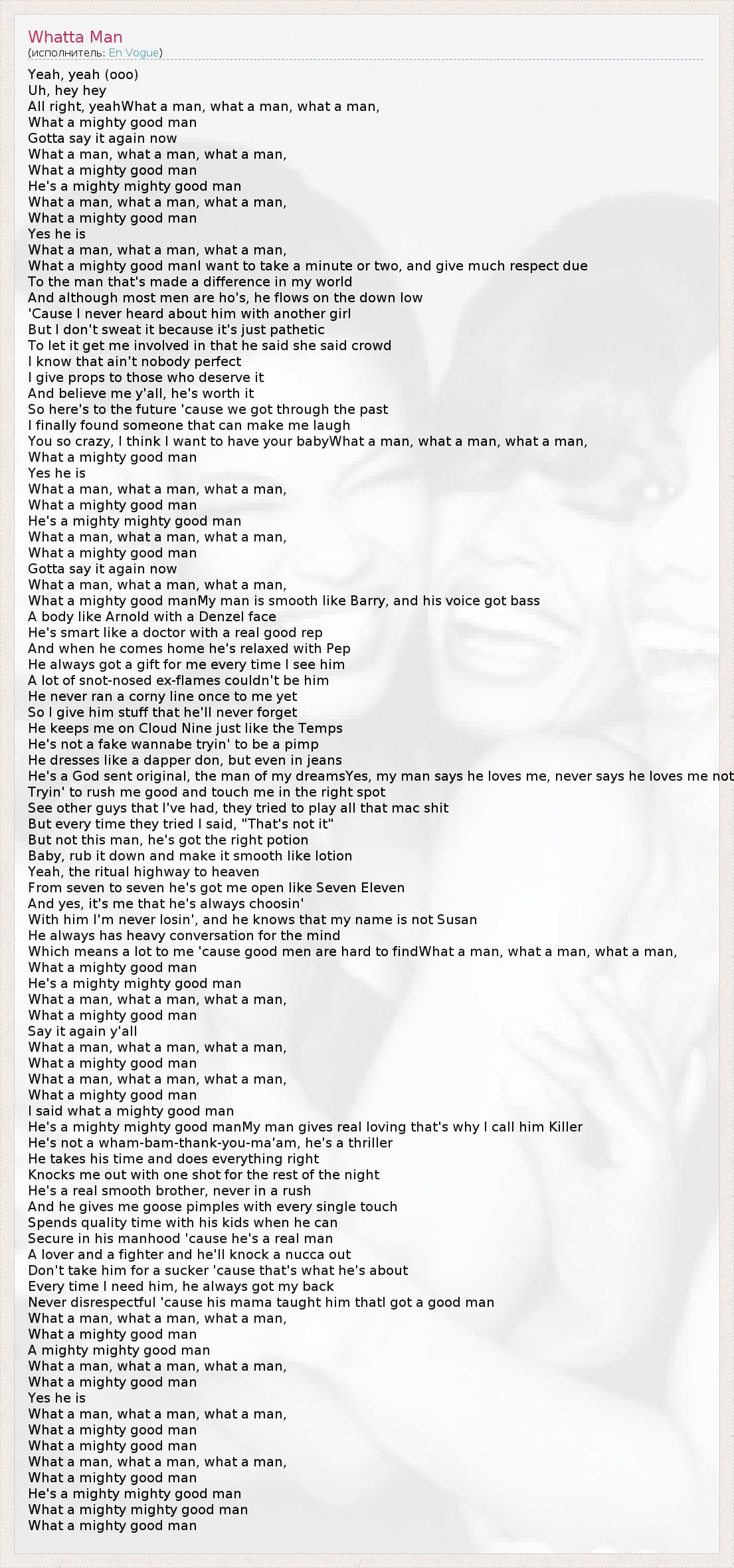 А как ты думаешь, о чем песня "Whatta Man" ?