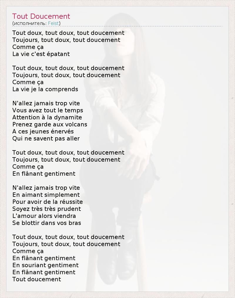 А как ты думаешь, о чем песня "Tout Doucement" ?