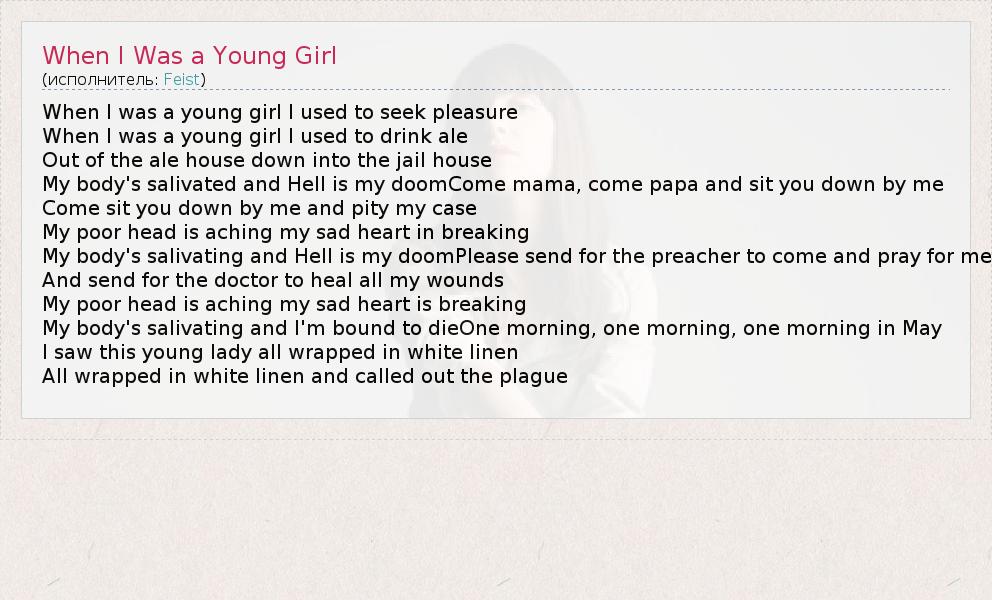 А как ты думаешь, о чем песня "When I Was a Young Girl" ?