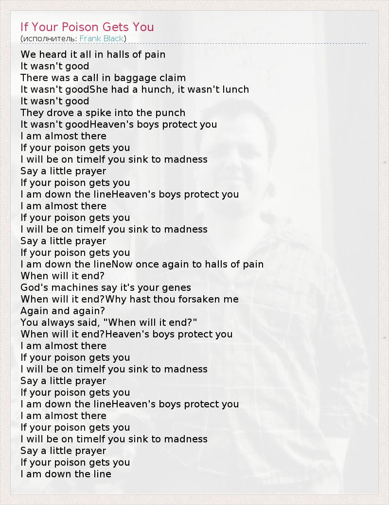 А как ты думаешь, о чем песня "If Your Poison Gets You" ?