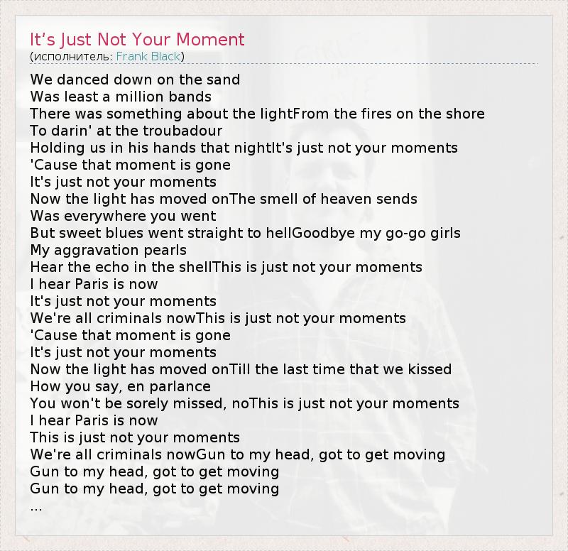 ГлавнаяИсполнителиFrank BlackIt’s Just Not Your Moment
