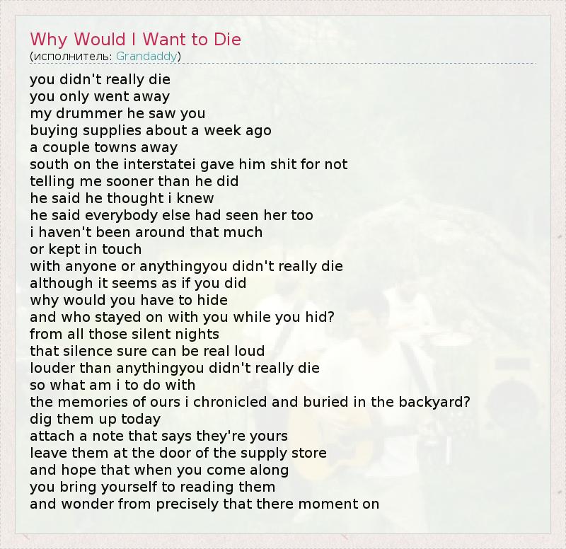 А как ты думаешь, о чем песня "Why Would I Want to Die" ?
