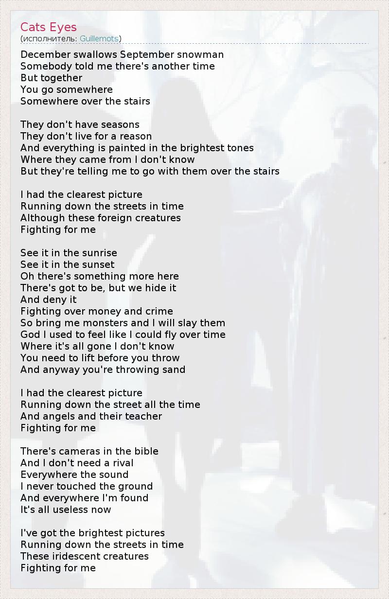 А как ты думаешь, о чем песня "Cats Eyes" ?