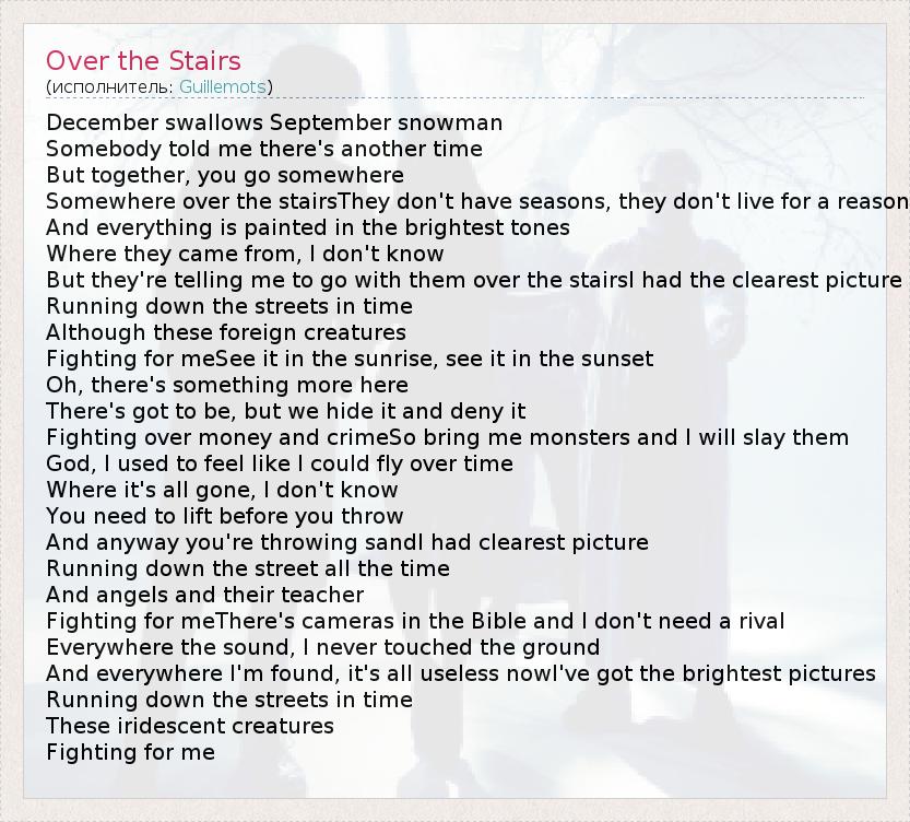 А как ты думаешь, о чем песня "Over the Stairs" ?