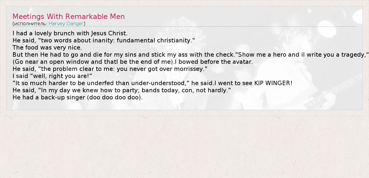 ГлавнаяИсполнителиHarvey DangerMeetings With Remarkable Men