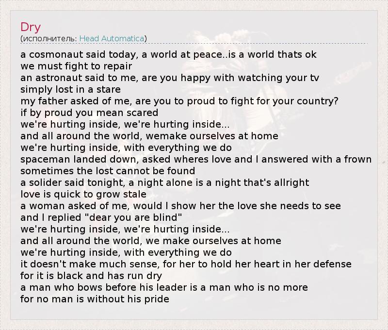 Это интересно:Head Automatica - rock\power pop группа основанная фронтменом Glassjaw Дэрилом Палумбо (Daryl Palumbo) в 2004м году.Своим появлением группа обязана интересу Дэрила, который он проявлял интерес к таким жанрам как хип-хап и брит-поп, и который не мог быть реализован в формате творчества post-hardcore группы Glassjaw. Первый альбом - Decadence, вышел 17 августа 2004 года, и был спродюссирован Дэном Накамурой (Dan... продолжение
