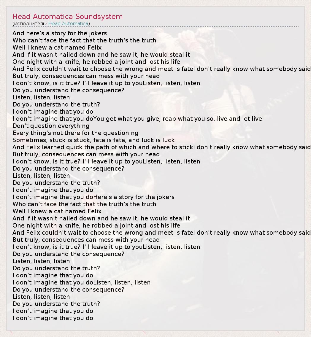 А как ты думаешь, о чем песня "Head Automatica Soundsystem" ?