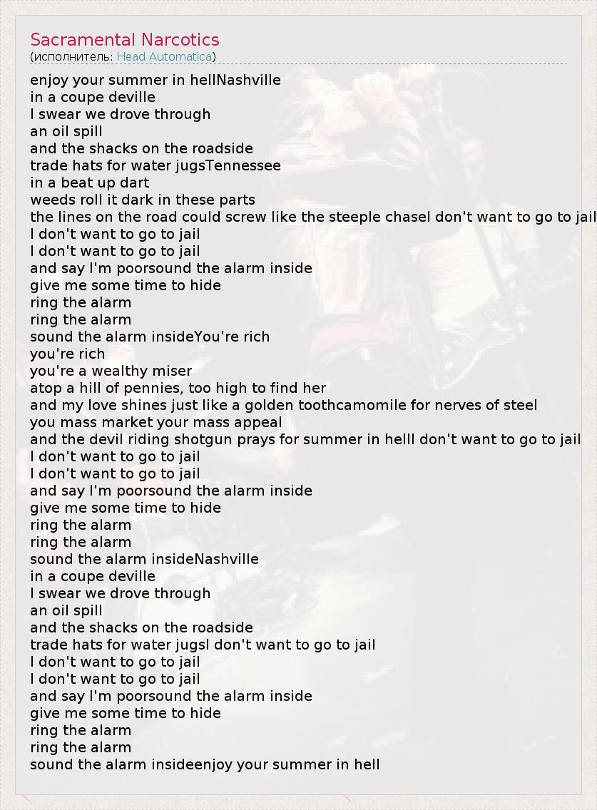 А как ты думаешь, о чем песня "Sacramental Narcotics" ?