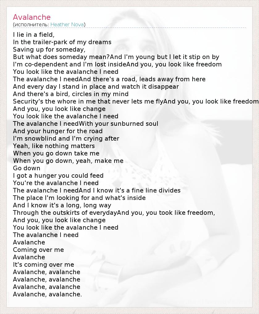 Это интересно:Heather Nova (настоящее имя Heather Allison Frith) родилась на Бермудах 6 июля 1967 года. На скрипке и гитаре Хитер начинает играть рано для своих лет, но первую песню напишет только к 12 годам. После окончания школы в Новой Англии, куда переехала её семья, в 1983 году Хитер поступила в Род-айлендскую школку дизайна (RISD), где она пробует себя в качестве автора сценария к фильмам. Она также посещала занятия по поэзии... продолжение