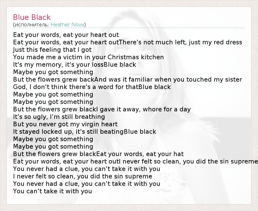 Eat your words, eat your heart outThere's not much left, just my red dress