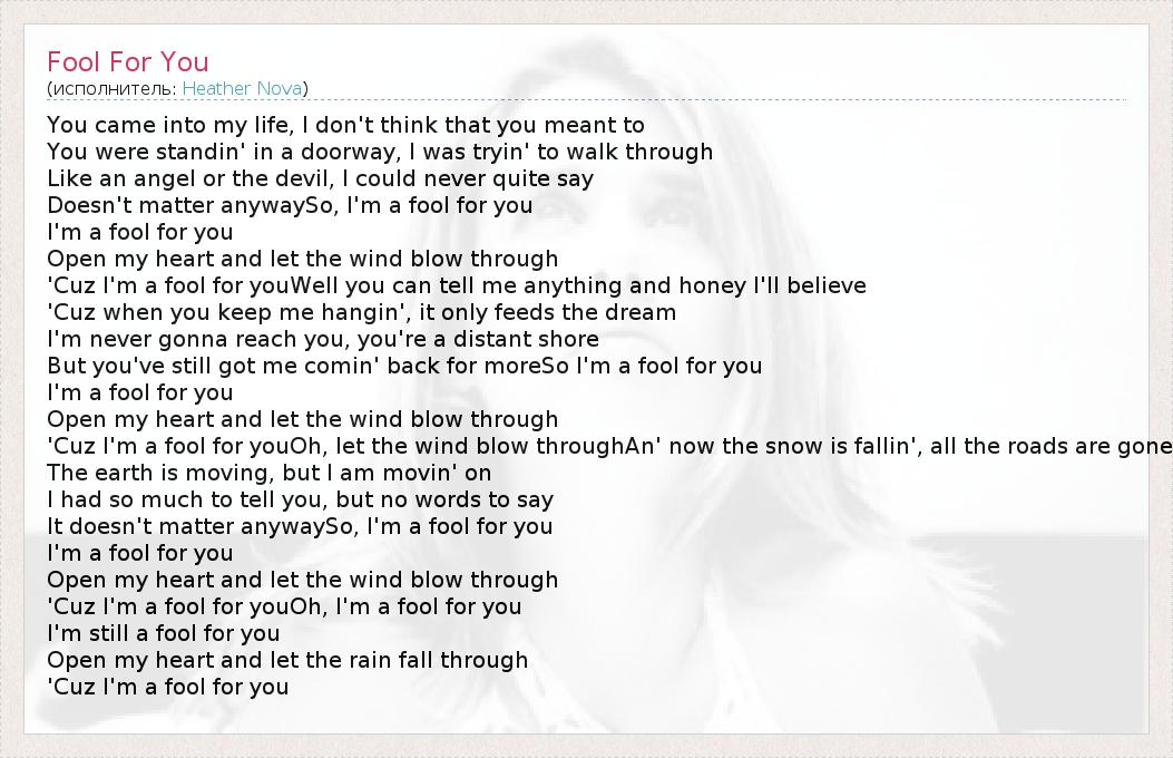 А как ты думаешь, о чем песня "Fool For You" ?