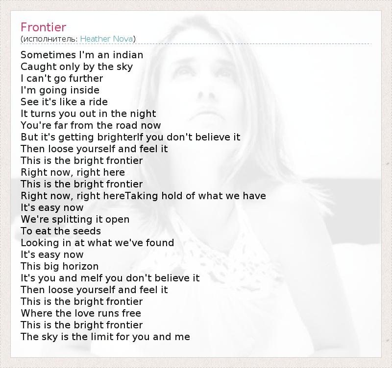Это интересно:Heather Nova (настоящее имя Heather Allison Frith) родилась на Бермудах 6 июля 1967 года. На скрипке и гитаре Хитер начинает играть рано для своих лет, но первую песню напишет только к 12 годам. После окончания школы в Новой Англии, куда переехала её семья, в 1983 году Хитер поступила в Род-айлендскую школку дизайна (RISD), где она пробует себя в качестве автора сценария к фильмам. Она также посещала занятия по поэзии... продолжение