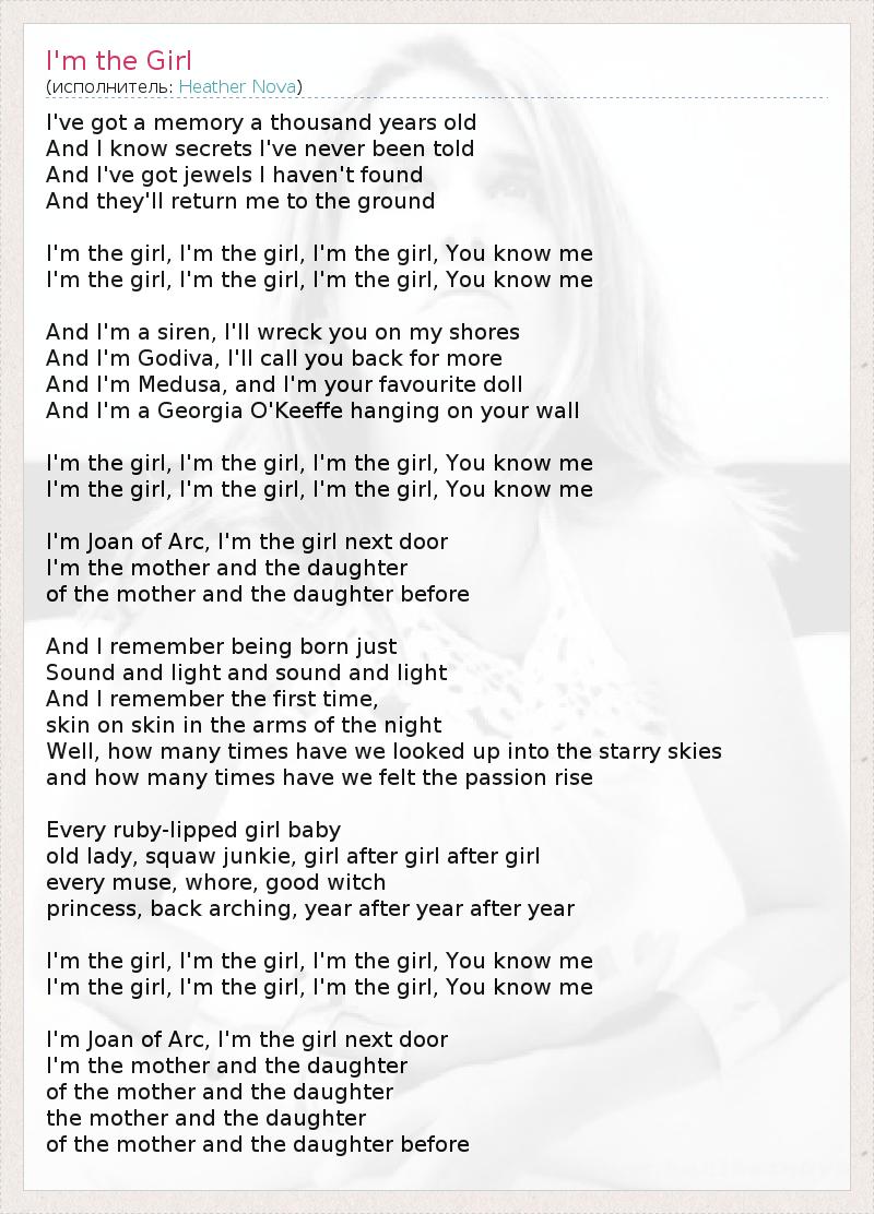 I'm the girl, I'm the girl, I'm the girl, You know me