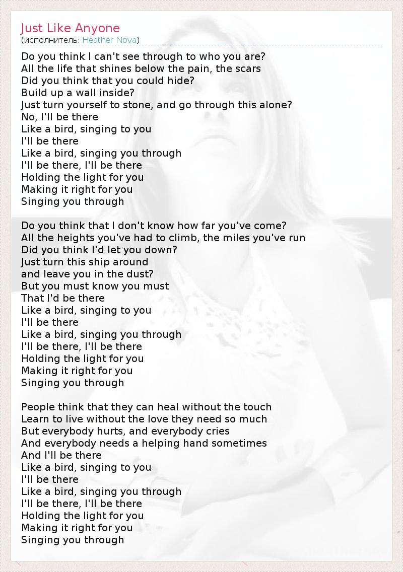 А как ты думаешь, о чем песня "Just Like Anyone" ?