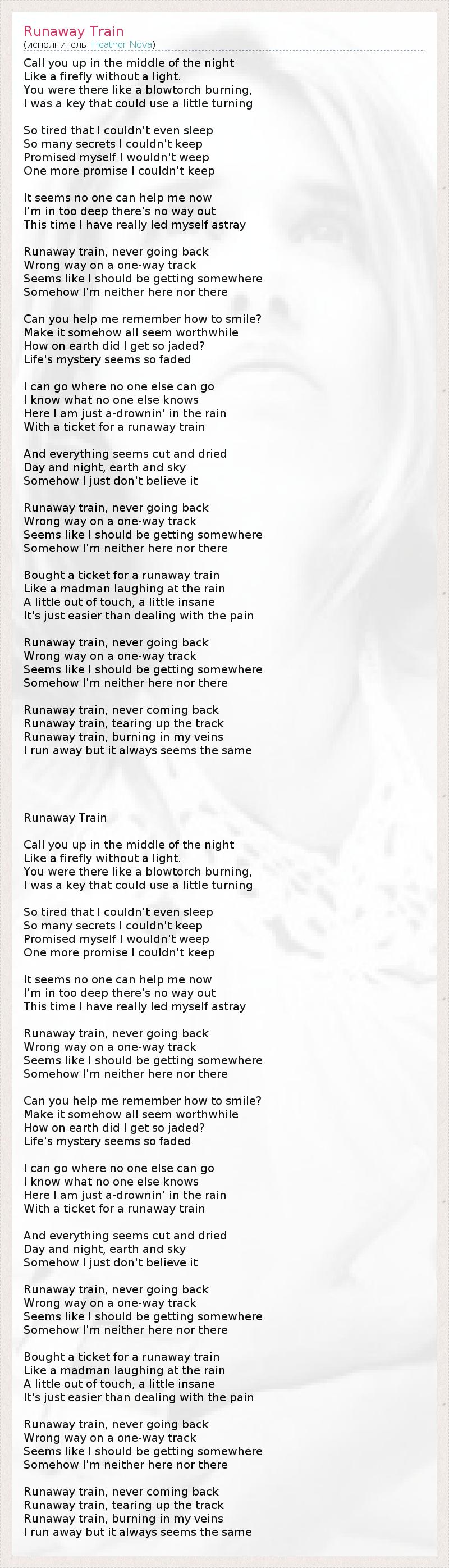А как ты думаешь, о чем песня "Runaway Train" ?