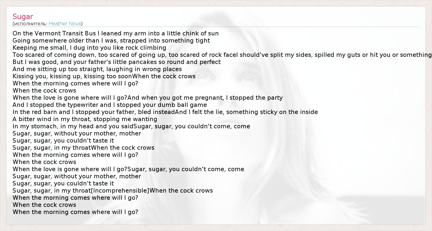 Sugar, sugar, in my throat[Incomprehensible]When the cock crows