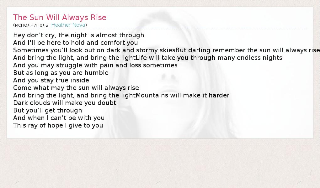 ГлавнаяИсполнителиHeather NovaThe Sun Will Always Rise