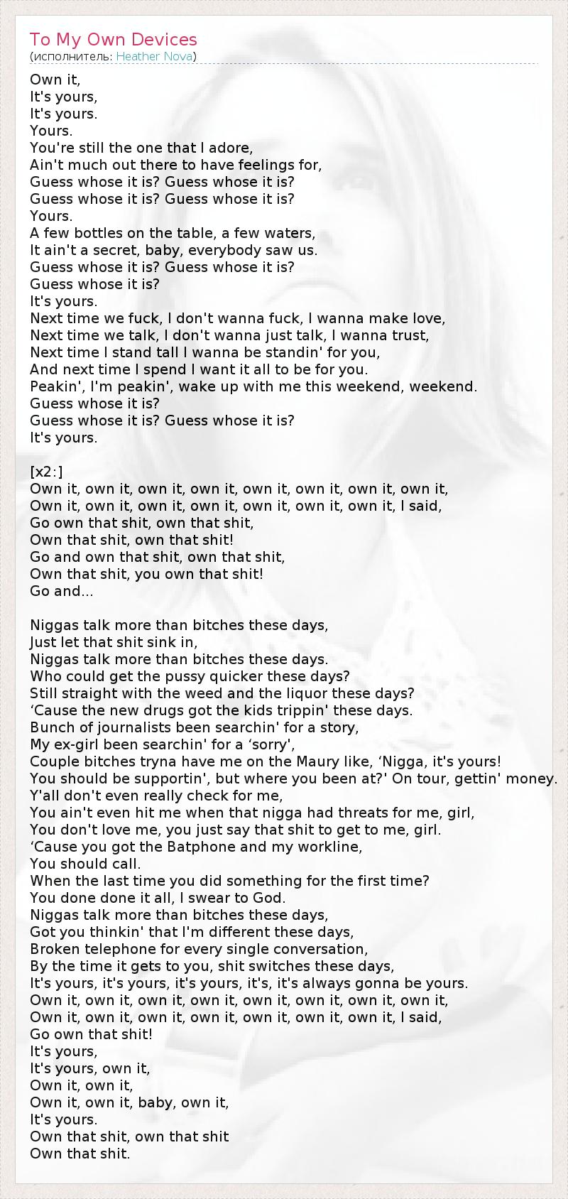 Own it, own it, own it, own it, own it, own it, own it, I said,
