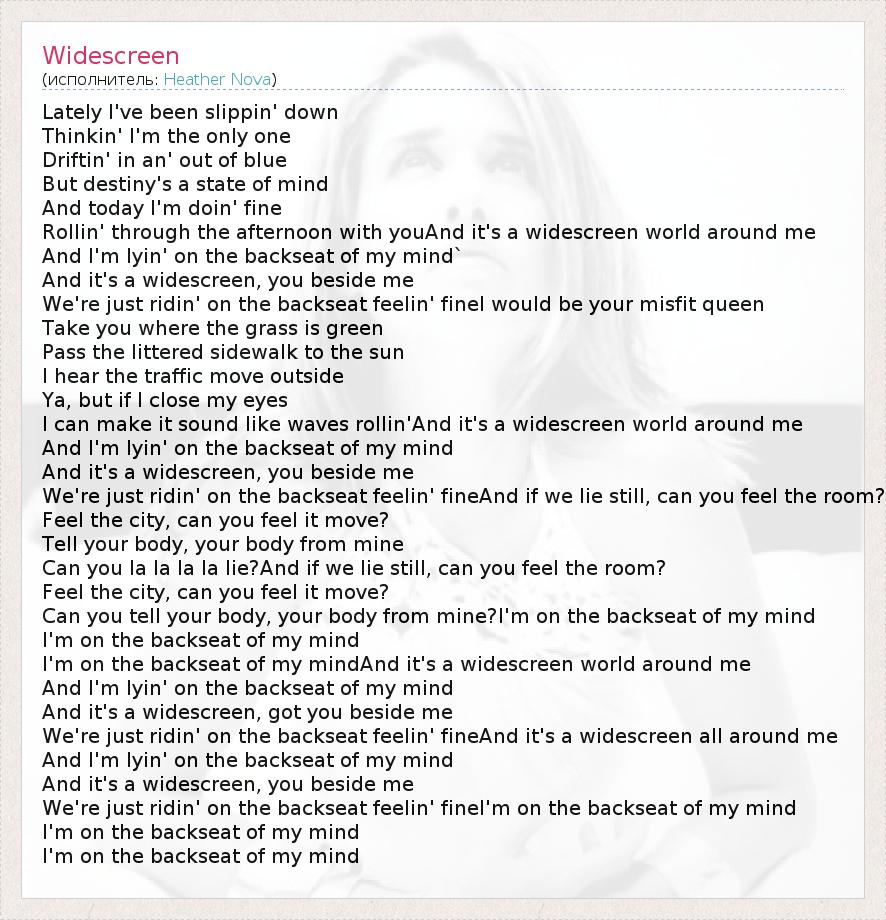 I'm on the backseat of my mindAnd it's a widescreen world around me