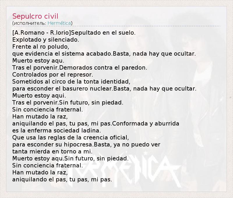 А как ты думаешь, о чем песня "Sepulcro civil" ?