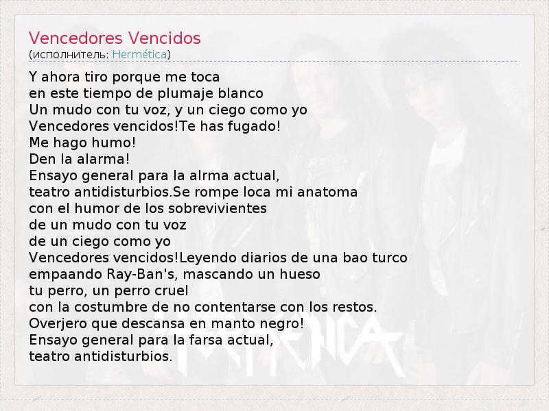 А как ты думаешь, о чем песня "Vencedores Vencidos" ?