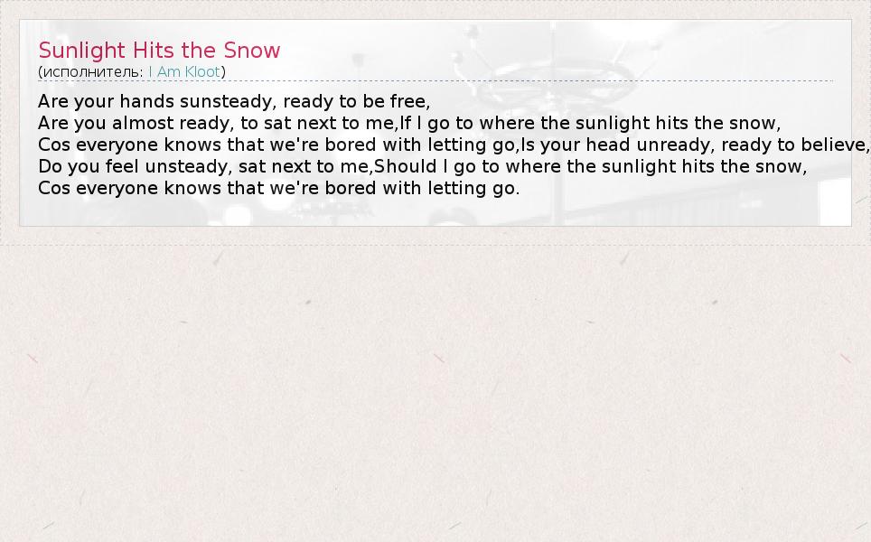 ГлавнаяИсполнителиI Am KlootSunlight Hits the Snow