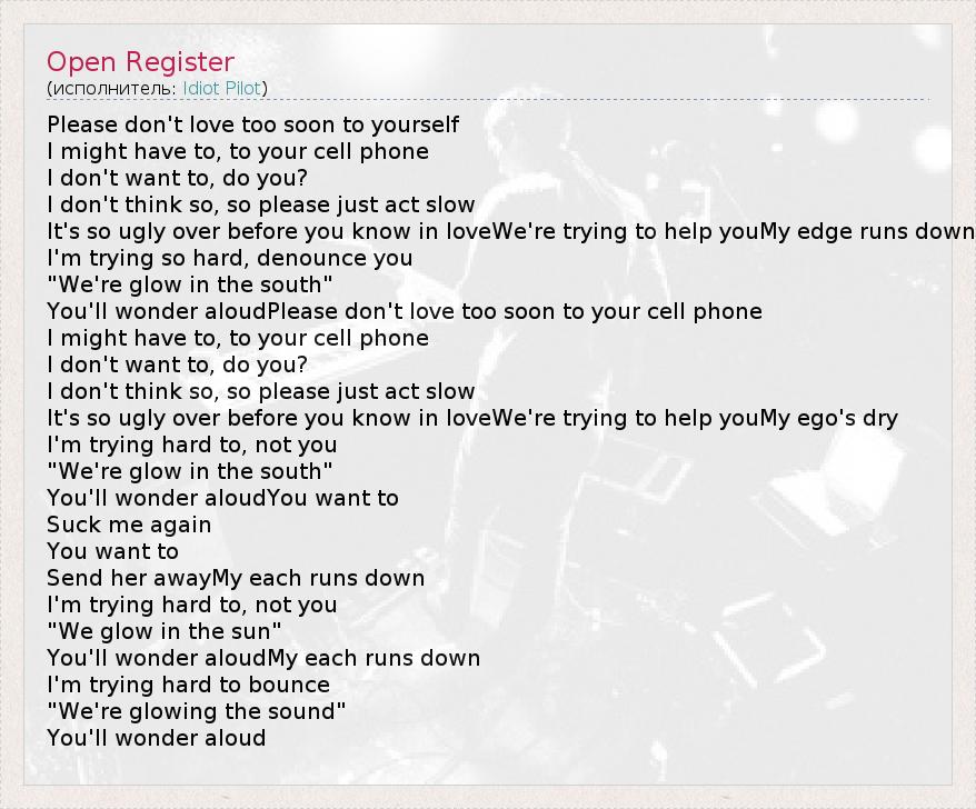 You'll wonder aloudPlease don't love too soon to your cell phone