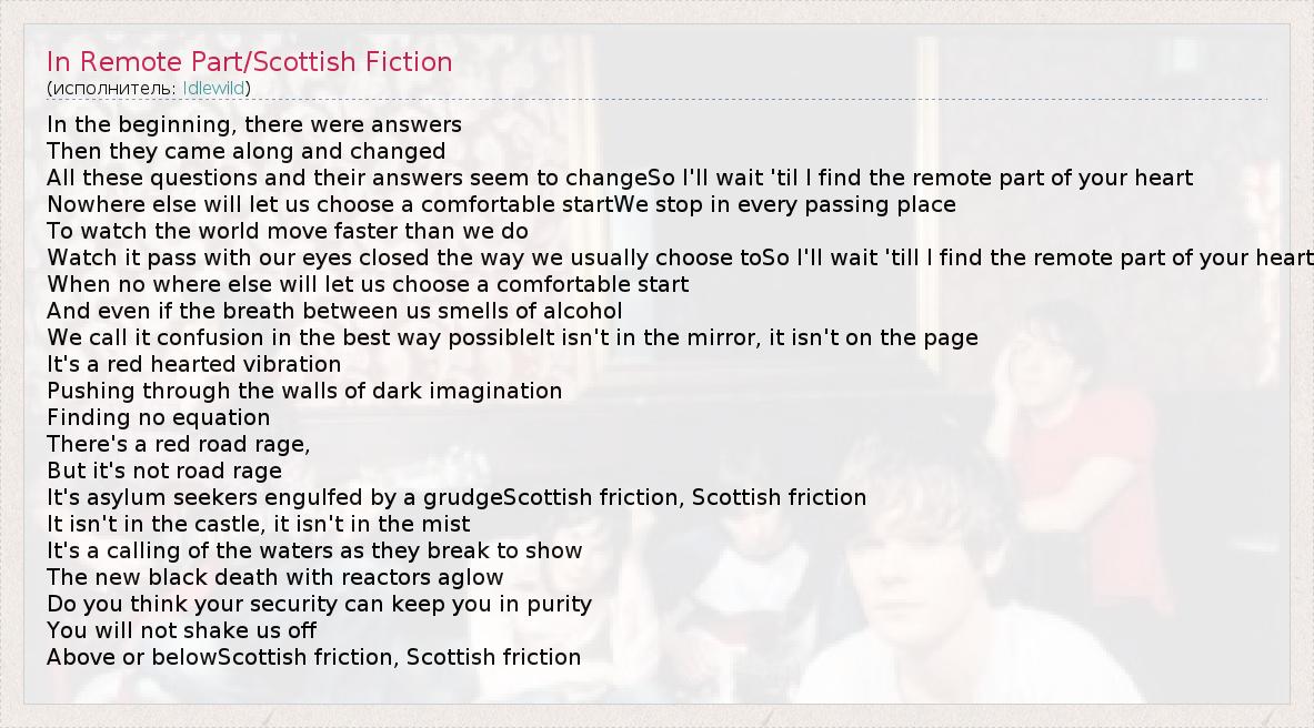 А как ты думаешь, о чем песня "In Remote Part/Scottish Fiction" ?