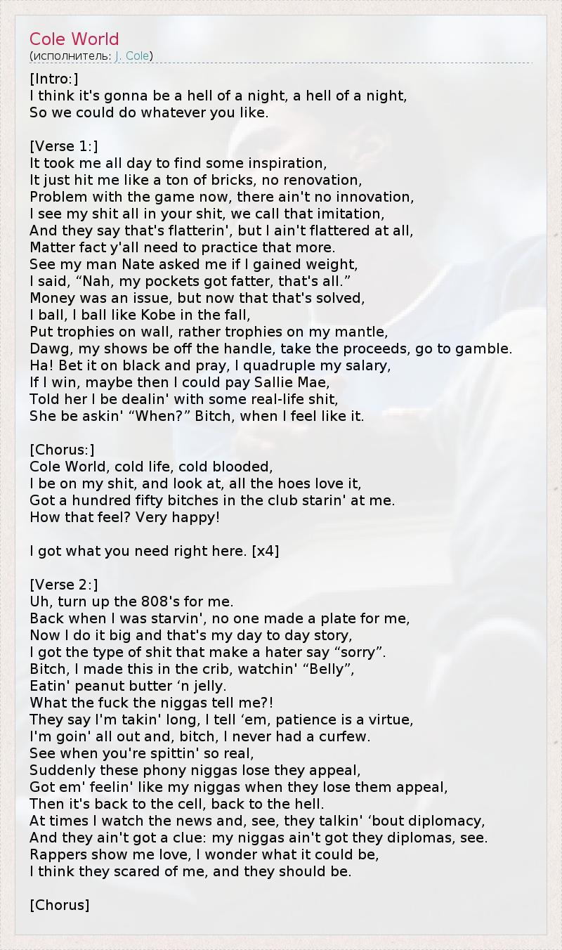 Это интересно:Jermaine Lamarr Cole (родился 28 Января 1985 года) более известный как J. Cole - это американский рэппер и продюсер. Ранние годыОн родился во Франкфурте, Германия. В возрасте 8 месяцев со свой мамой переехал в Фейетвилл, Северная Каролина, где он воспитывался мамой и тётей. Его отец афро-американец, а его мама была белой. Коул учился в Terry Sanford High School в Фейетвилл и выпустился... продолжение