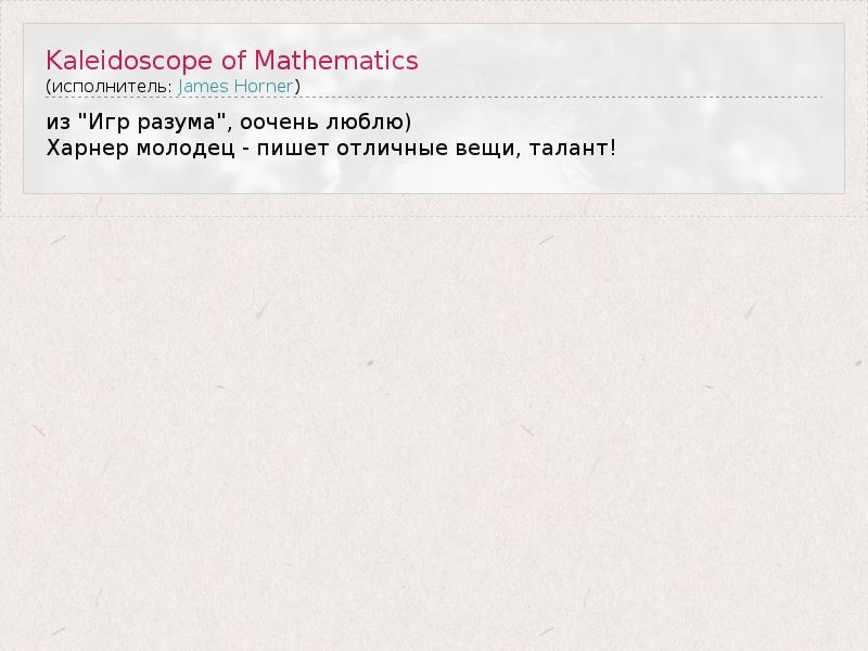 ГлавнаяИсполнителиJames HornerKaleidoscope of Mathematics