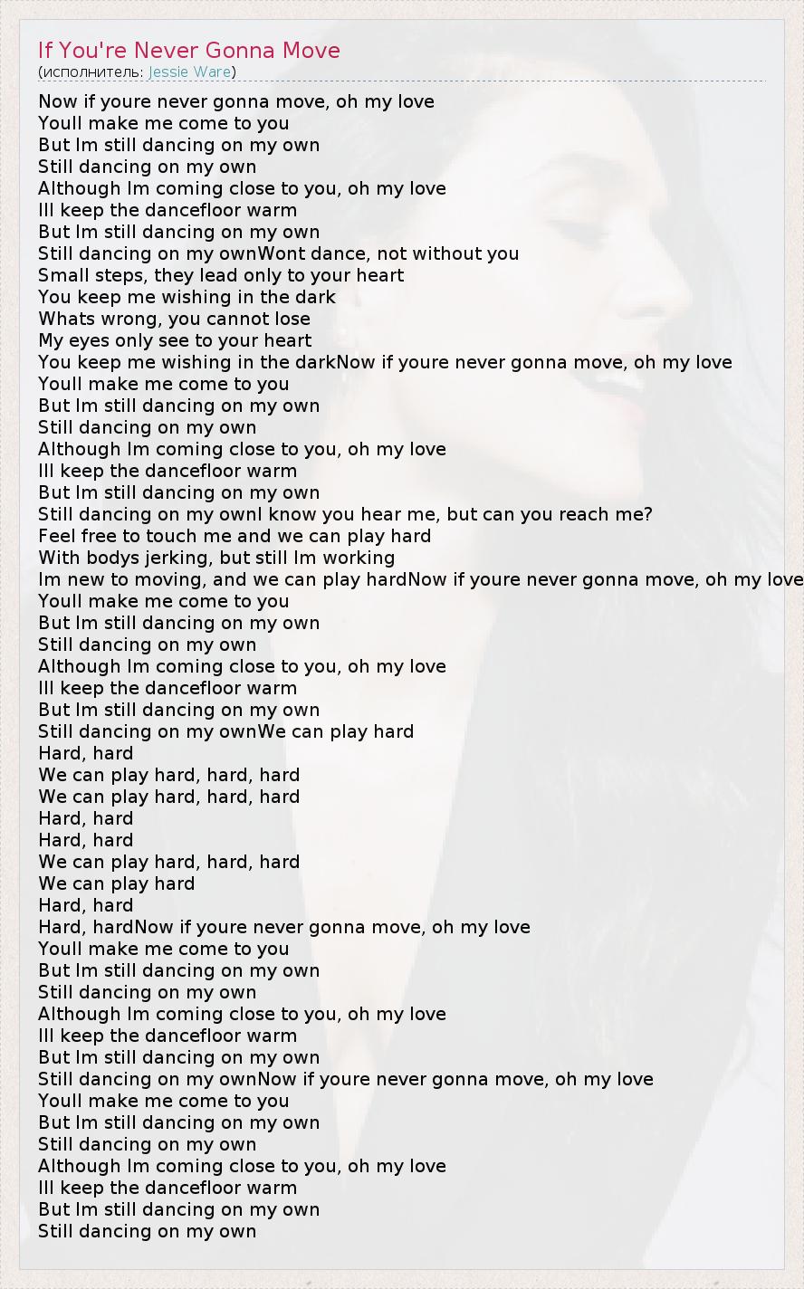 ГлавнаяИсполнителиJessie WareIf You're Never Gonna Move